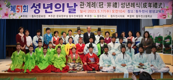 [금요저널] 동두천시는 제51회 성년의 날을 맞아 지난 17일 동두천시 평생학습관에서 전통 성년례를 개최했다고 밝혔다.