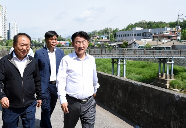 [금요저널] 김동근 의정부시장이 시민들의 안전한 보행을 위해 5월 17일 을지대병원 인근 중랑천 ‘가금인도교’를 찾아가 현장점검을 실시했다.