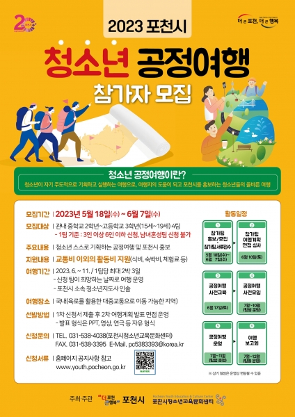 [금요저널] 포천시는 관내 청소년들의 긍정적인 여가 선용을 위해 자기 주도적으로 여행을 기획해 여행지에 도움을 주고 포천시를 홍보하는 ‘2023년 포천시 청소년 공정여행’ 참가 청소년을 모집한다.