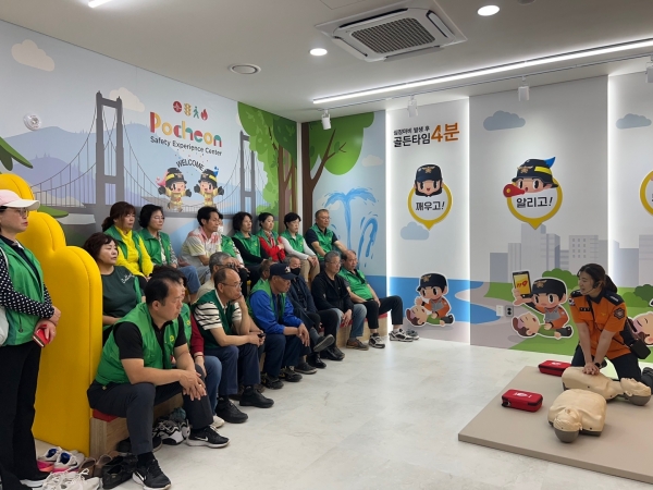 포천 선단 119안전센터에서 진행된 생활안전체험교육은 심폐소생술 및 자동심장충격기, 기도폐쇄 처치법 교육, 소화기 및 옥내소화전 사용방법 교육, 화재대피 체험, 승강기 안전사고 체험으로 진행됐다.