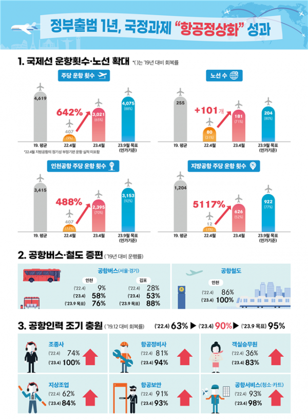 국제선 운항 1년 간 642% 증가, 완전 정상화 추진