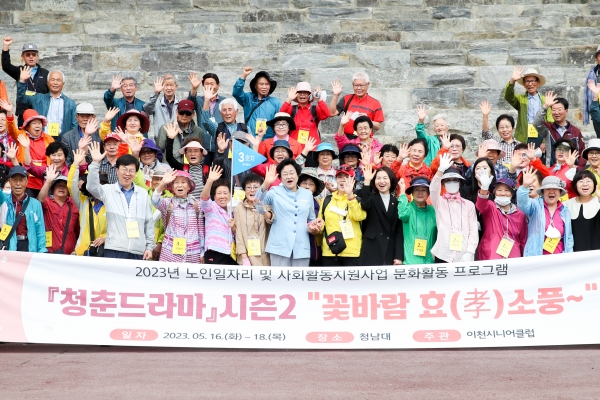 이번 문화활동 청춘드라마 시즌2 “꽃바람 효소풍”은 노인일자리사업 참여 어르신약 1,200명을 모시고 5월 16일~18일까지 3일간 청주 청남대에서 진행했다.