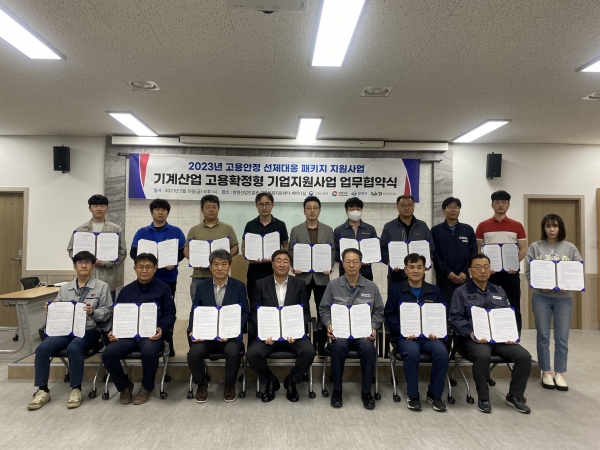 [금요저널] 창원특례시는 19일 창원산업진흥원 고용안정지원 교육센터에서 ‘2023년 고용안정 선제대응 패키지 지원사업’의 원활한 사업 추진을 위해 창원산업진흥원과 기계산업 고용확정형 기업지원사업 선정기업 17개사가 업무협약을 체결했다고 밝혔다.