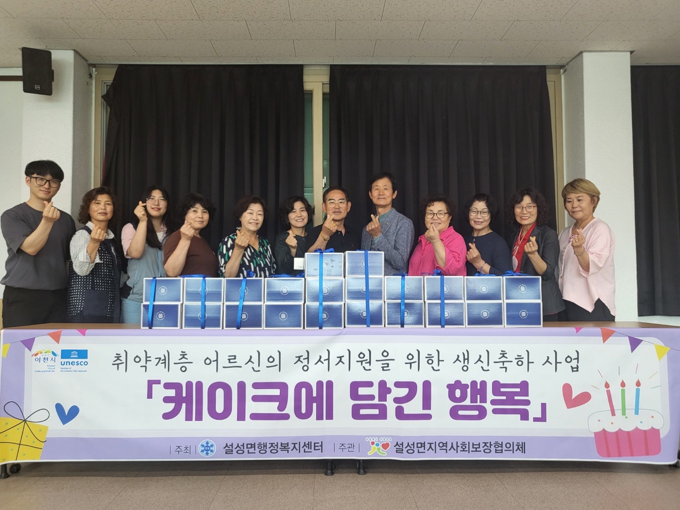이천시 설성면지역사회보장협의체(공동위원장 김홍주, 이병상)는 지난 5월 18일, 만80세 이상 취약계층 어르신의 생신축하를 통한 정서적 지원 및 안부확인을 위한 「케이크에 담긴 행복」 사업을 실시하였다.