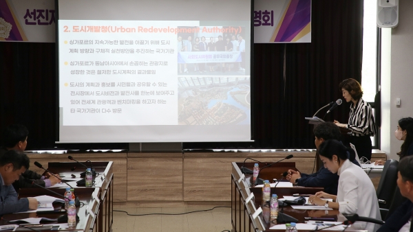 이날 정재호 사회도시위원장을 비롯한 6명의 위원은 지난 4월 4박 6일간 싱가포르 국외 연수를 바탕으로 다양한 우수사례를 제안했다.