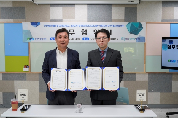 이번 업무협약은 인천지역 예비·초기 창업자 지원과 소상공인·중소기업의 지식재산 역량 강화 및 연계 지원에 대해 상호 협력하기 위한 목적이다.