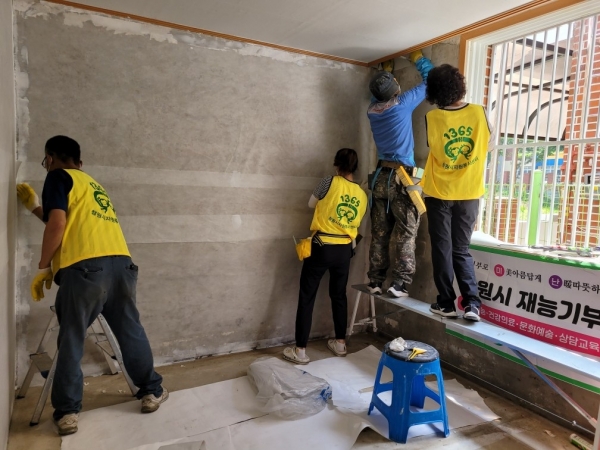이번 활동은 창원시재능기부뱅크 소속 기술·기능 분야의 건축·인테리어 재능을 가진 개인 자원봉사자 7명이 함께 뜻을 모아 참여했으며 방 안 가득한 곰팡이 때문에 거실에서 생활하고 있는 저소득 세대를 돕고자 장판 교체와 도배 작업 등 쾌적한 주거환경을 위해 재능 나눔을 실천했다.