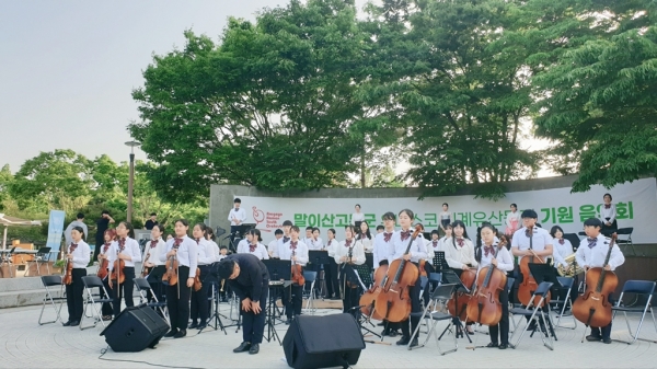 [금요저널] 아라가야함안청소년오케스트라의 주최·주관으로 지난 20일 오후 함안박물관 야외공연장에서 ‘말이산고분군 유네스코 세계유산 등재기원 음악회’가 열렸다.