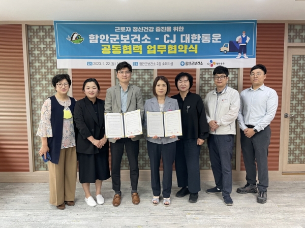 [금요저널] 함안군보건소 정신건강복지센터는 CJ대한통운과 근로자 정신건강 증진과 생명 존중 문화 확산을 위한 업무협약을 체결했다고 22일 밝혔다.