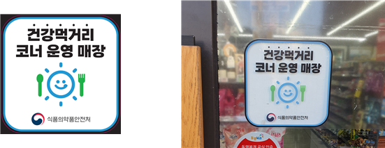 또한, 어린이 기호식품 품질인증 음료 등 당을 적게 사용한 음료와 과일·샐러드 등 어린이의 올바른 식습관 형성에 도움을 줄 수 있는 제품의 진열대를 쉽게 확인할 수 있도록 건강먹거리 코너임을 알리는 표지물을 부착한다.