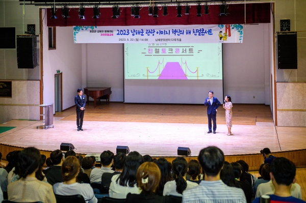 [금요저널] 남해군은 22일 남해문화센터 다목적홀에서 ‘2023 관광이미지 혁신의 해, 친절콘서트’를 개최했다.