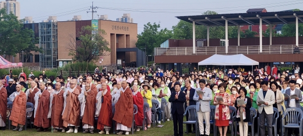 코로나19로 4년 만에 열린 이날 행사에는 시민, 신도들과 홍태용 시장을 비롯해 김정호 국회의원, 서희봉·김시영 도의원, 김창수 시의원 등 800여명이 참석했다.