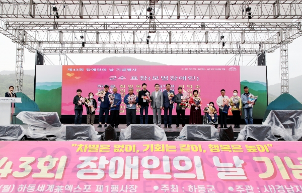 장애인복지증진 유공자로 경남지체장애인연합회 하동군지회 조기표, 경남장애인부모연대 하동군지부 천정우, 경남시각장애인복지연합회 하동군지회 김준영씨 등 3명이 군수 표창을 수상했다.