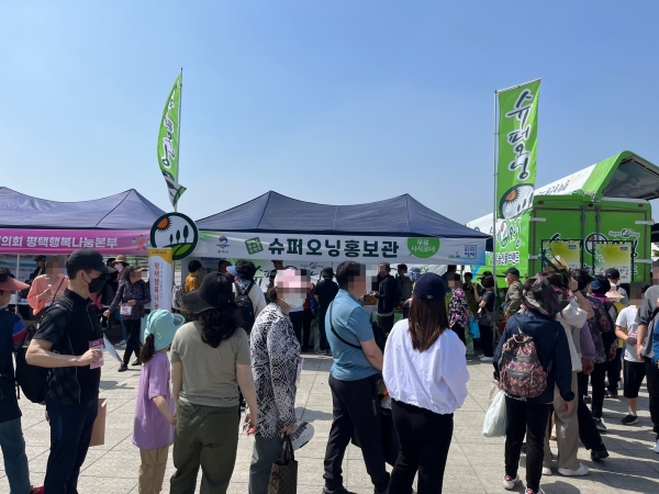 [금요저널] 평택시는 지난 20일 이충레포츠공원 광장에서 열린 ‘2023 평택시민 건강걷기대회’에서 평택시의 농특산물 통합브랜드인 슈퍼오닝 농산물을 홍보하는 시간을 가졌다.