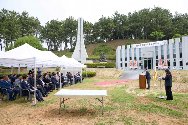 [금요저널] 통영시는 5월 22일 오전 10시 천영기 통영시장, 김미옥 통영시의회의장, 이충권 대한민국전몰군경유족회 경남지부통영시지회장, 보훈단체장 등 50여명이 참석한 가운데 충혼관 앞에서 충혼관 준공 및 위패봉안식을 가졌다.
