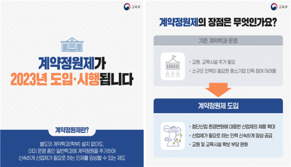 첨단분야 산업체의 채용예정 인재를 양성하는 경우 별도의 계약학과 설치 없이도 기존 학과에 계약정원을 추가해 운영할 수 있고 산업체의 운영경비 부담비율도 기존 50% 이상에서 50% 미만도 가능해진다.