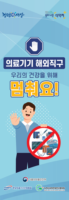 이번 캠페인은 식약처, 한국의료기기산업협회, 녹색소비자연대전국협의회가 함께 해외직구 의료기기 사용의 위험성을 알리고자 ‘의료기기 해외직구 우리의 건강을 위해 멈춰요’를 주제로 진행한다.
