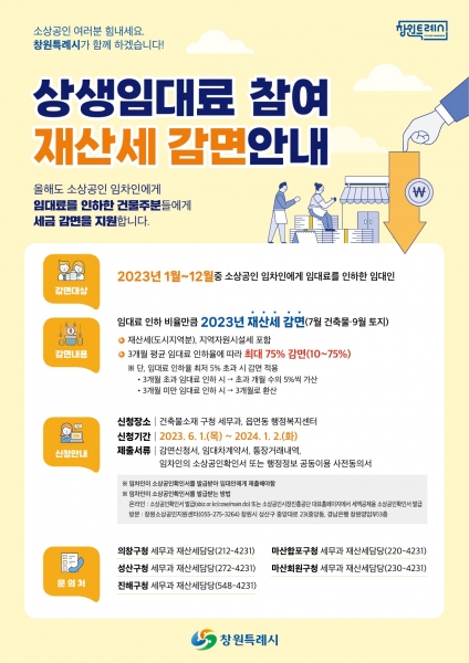 2023년 한 해 동안 임대료를 인하한 경우 인하율에 따라 10% ~ 75%까지 건축물과 토지 재산세에 대한 감면을 적용한다.