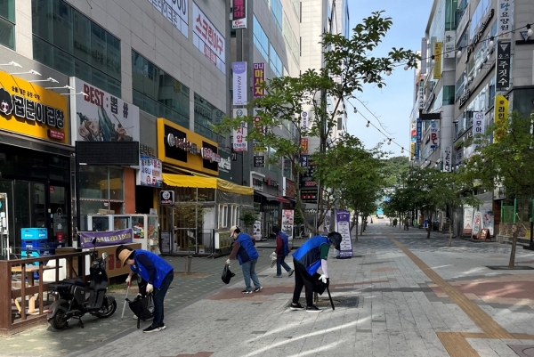 이날 봉사대 40여명은 3개의 조로 나눠 비닐봉투와 집게를 들고 로데오거리, 상업지구 골목 구석구석 담배꽁초, 생활 쓰레기를 주웠다.