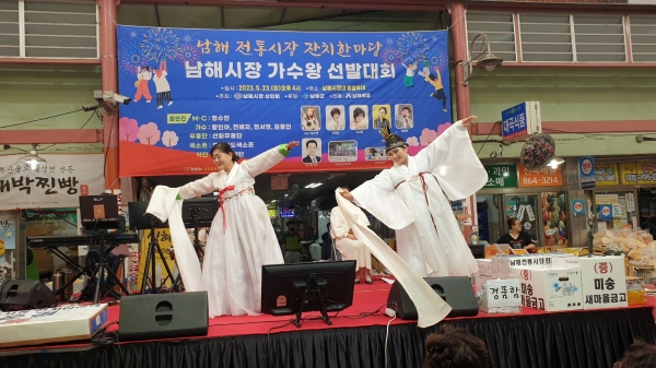시장상인·지역주민·관광객 등 300여명이 모였으며 남해시장 가수왕 선발대회, 초청가수 무대, 행운권·경품추천 이벤트 등 다채로운 프로그램이 진행됐다.