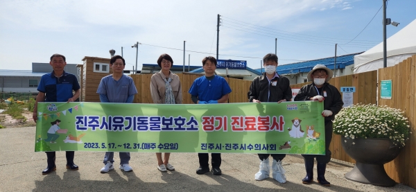 [금요저널] 진주시수의사회는 지난 17일부터 매주 수요일 회원들이 순번을 정해 2명 1조로 진주시 유기동물보호소에 임시보호하고 있는 동물을 대상으로 전염병 의 질병검사와 예방접종 등 자원봉사를 하고 있다.