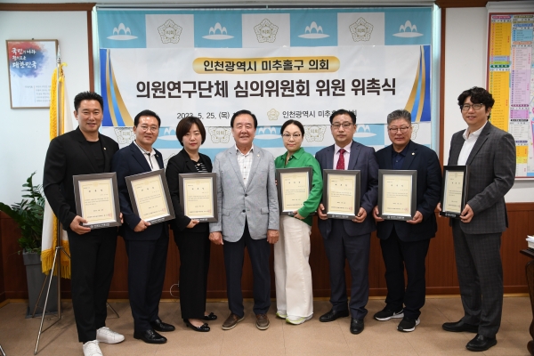 [금요저널] 인천광역시 미추홀구 의회는 25일 미추홀구의회 의원연구단체 심의위원회 위원을 위촉하고 2023년 제1차 의원연구단체 심의위원회를 개최했다고 밝혔다.