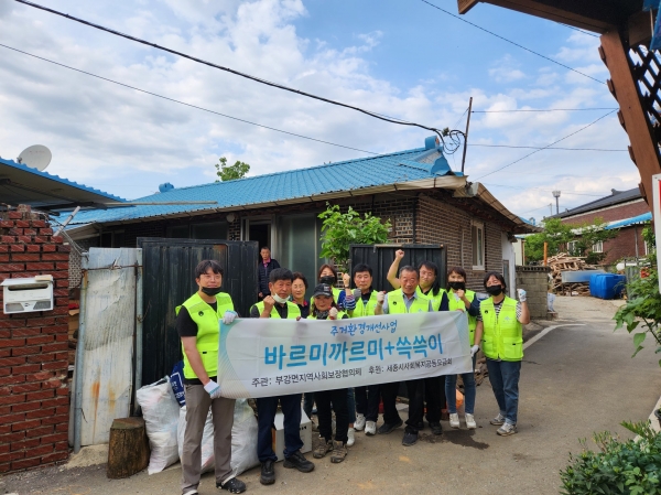 이날 부강면 지역사회보장협의체는 방치된 쓰레기를 수거하고 집 내부 또한 청소를 벌여 쾌적한 주거환경을 조성했다.