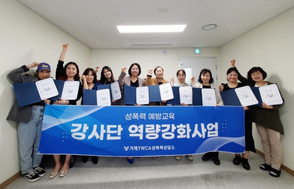 [금요저널] 거제YWCA성폭력상담소가 지역 내 성폭력 예방교육 기반을 확립하기 위한 성폭력 예방교육 강사단 역량강화교육을 이수한 강사 10명을 대상으로 ‘2023 성폭력예방교육 강사단’ 위촉식을 진행했다.