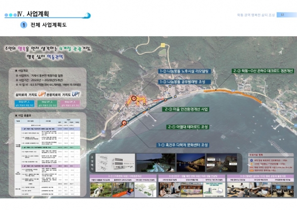 또한 어촌 수변가로에 학동~수산 은하수 데크로드를 조성해 타 어촌마을과 차별화된 아름다운 경관 창출로 ‘삶터로서 관광지로서 매력 있는 학동마을’을 만들어갈 것으로 기대된다.