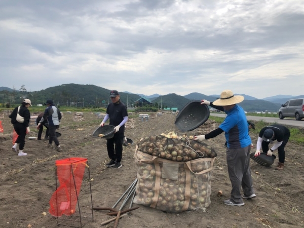 이에 대한 일환으로 경남도청 농정국 직원들은 각각 산청군 생초면과 오부면 일원에서 마늘 수확작업을 실시했다.