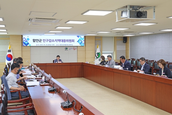 [금요저널] 함안군은 26일 군청 별관 3층 중회의실에서 ‘함안군 인구감소지역대응 기본계획 및 시행계획 수립’ 심의를 위한 함안군 인구감소지역대응위원회를 개최했다.