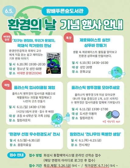 화성시립왕배푸른숲도서관이 다음달 한 달간 ‘환경의 날 기념행사’를 진행한다.
