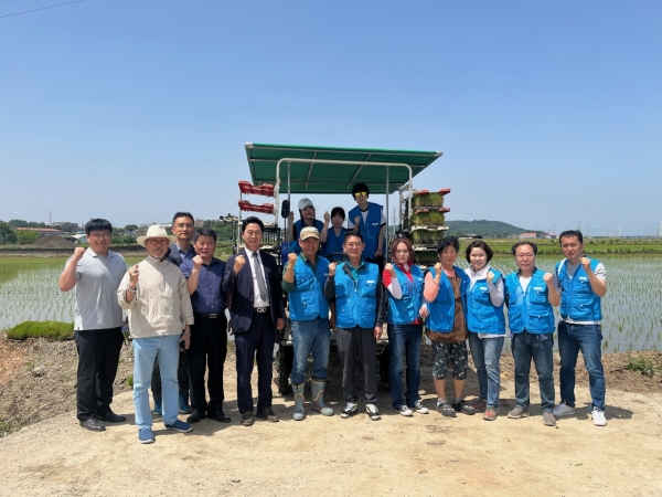 이날 모내기에는 김동기 위원장과 회원 등 20명이 참여한 가운데 5천여㎡ 농경지에 이양기를 이용해 정성껏 모를 심었다.