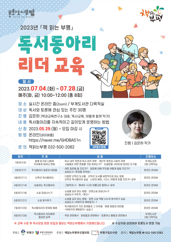 부평구립도서관, 2023년 책 읽는 부평 독서동아리 리더 교육 신청·모집