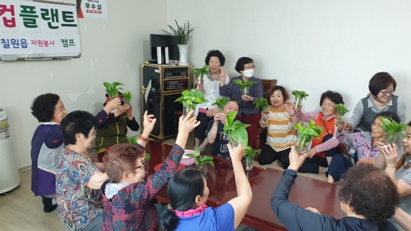 활동에 참여한 어르신은 “쉽게 만들 수 있고 투명한 용기라 시원해 보이고 눈이 즐겁다 잎이 자라면 똑같이 만들어서 친구에게 나눠 주겠다”고 전했다.