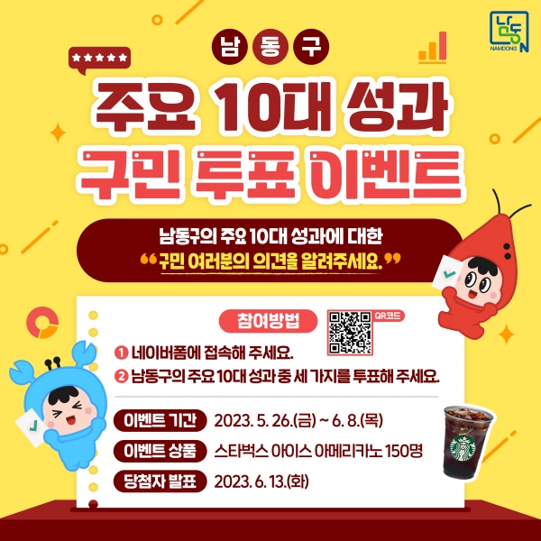 “남동구 주요 10대 성과에 투표해주세요”…구민이 뽑는 우리 동네 정책