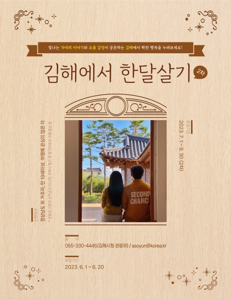 [금요저널] 김해시는 한 달 살기 프로그램 ‘요즘김해, 지금여행’ 참가자를 모집한다고 31일 밝혔다.