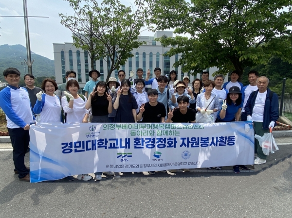 [금요저널] 의정부시는 의정부 베이비부머 행복캠퍼스 교육생들이 5월 23일과 26일 경민대학교 교내 동아리와 연합해 ‘행복캠퍼스 경민대학생과 함께하는 환경정화 활동’을 진행했다고 밝혔다.