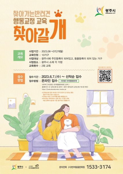 교육 신청은 7일부터 사단법인 반려동물문화원 홈페이지에서 선착순으로 진행되며 신청가구의 반려견이 동물등록이 돼 있어야 참여가 가능하다.