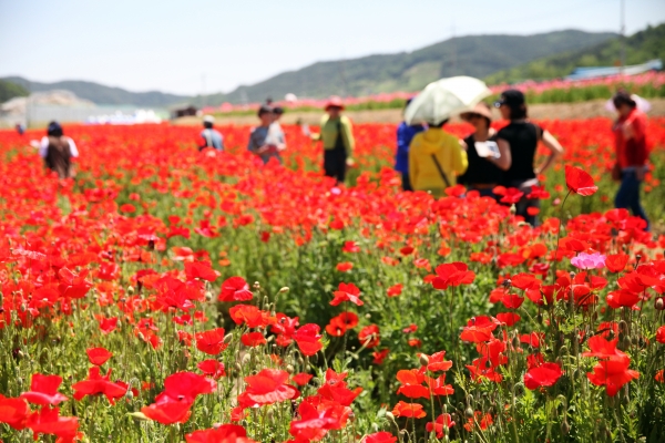특히 꽃양귀비를 구경하는 관람객의 편의를 위해 편의 시설과 잔디광장 정비, 자연 친화적인 소나무 톱밥 산책로를 확대 조성해 꽃길을 걷는 방문객이 꽃향기와 소나무 향기에 흠뻑 빠져들게 했다.