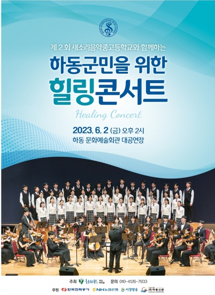이번 힐링 콘서트는 하동군민의 후원금으로 이뤄지는 행사로 한국전력공사, 서경방송, 농협은행, 하동신문이 후원하며 초등학생 이상 누구나 무료로 관람할 수 있다.