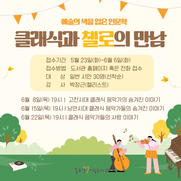 6월에는 박장근 첼리스트와 ‘클래식과 첼로의 만남’을 주제로 첼로 연주와 함께하는 인문학 강연을 진행한다.