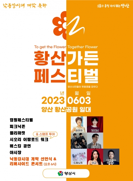양산시는 오는 6월 3일 황산공원에서 ‘낙동강시대 개막 선언식’ 및 ‘황산가든페스티벌-리버사이드 콘서트’를 개최한다고 밝혔다.
