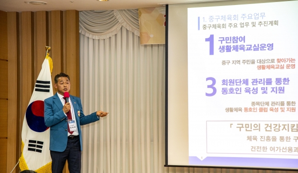 아울러 김홍섭 명예회장은 중구와 체육회의 상생 발전 방안에 대해 특강을 진행했다.