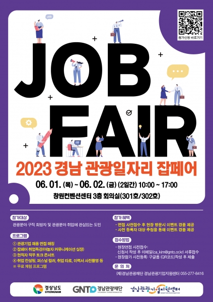 [금요저널] 경남도는 경남관광재단과 함께 오는 6월 1일부터 2일까지 ‘2023년 경남 관광일자리 잡페어’를 창원컨벤션센터 301·302호에서 개최한다고 밝혔다.