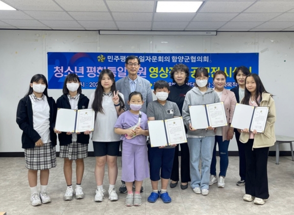 [금요저널] 민주평화통일자문회의 경남함양군협의회는 지난 5월 26일 오후 5시 함양기관단체청사 3층 다목적실에서 2023년 청소년 평화통일기원 영상작품 공모전 시상식을 개최했다.