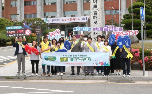 [금요저널] 김해시는 제36회 세계 금연의 날을 맞이해 31일 시청 입구에서 출근하는 직원들을 대상으로 출근길 금연 캠페인을 실시했다고 밝혔다.