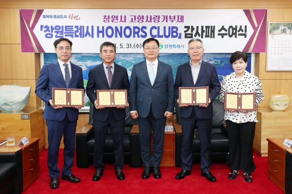 [금요저널] 창원특례시는 31일 오후 2시 접견실에서 고향사랑기부 연간 최고액을 기부한 ‘창원특례시 HONORS CLUB’ 회원들에게 감사패를 전달했다고 밝혔다.