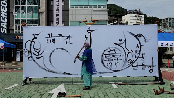 또한, ‘사천 공예 만들장’에 담긴 의미를 기원하는 송강 김대현 장승명장의 드로잉 퍼포먼스가 시연돼 관람객에게 큰 감동을 안겨줬다.