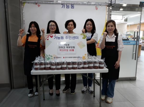 의정부여고 학부모회는 매년 가능동에 거주하는 어려운 이웃을 위해 약고추장, 모과청 등 손수 먹거리를 정성껏 만들어 기탁하고 있다.